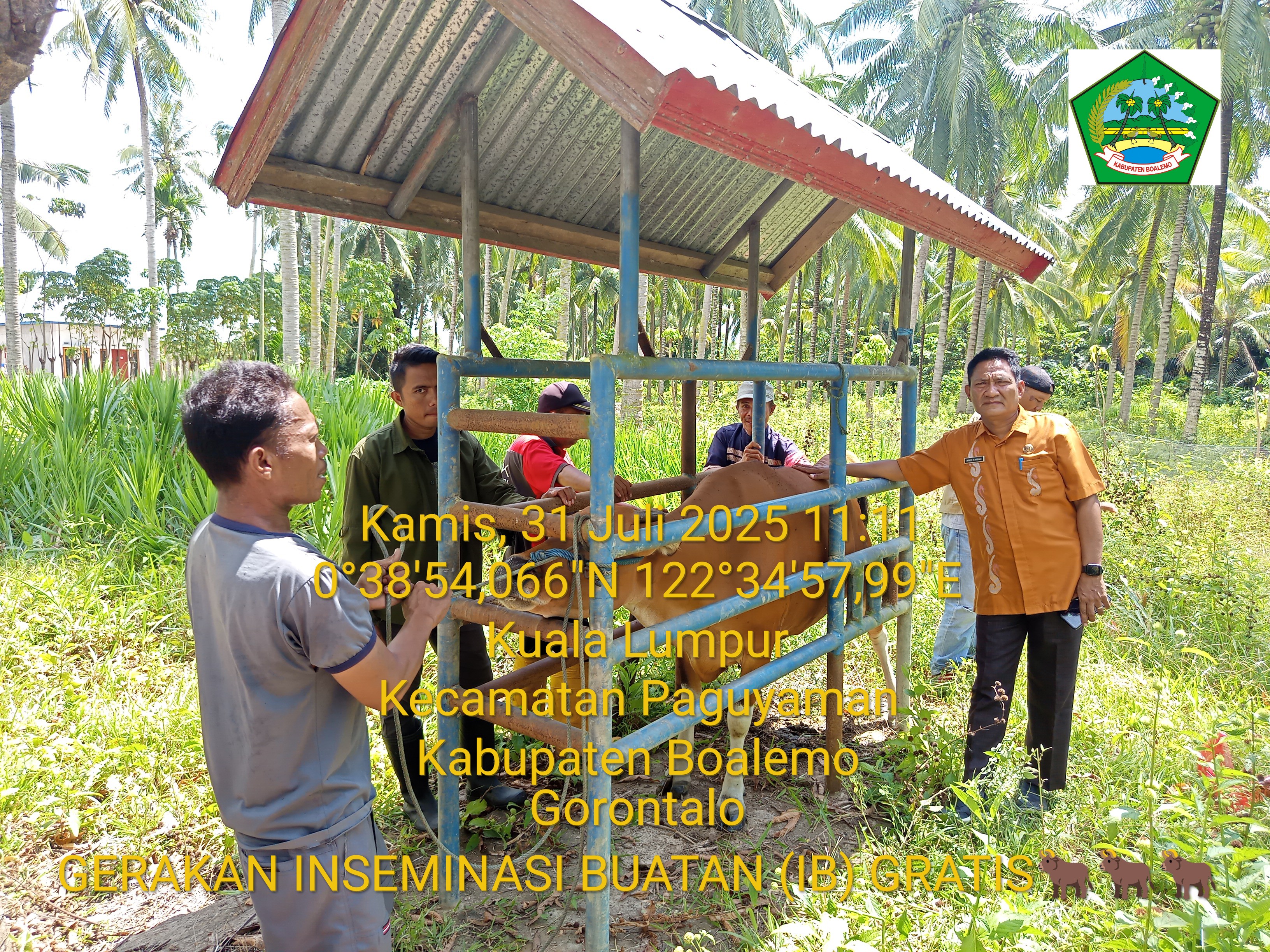 Pelayanan Inseminasi Buatan (IB) Gratis pada Ternak Sapi di wilayah Kecamatan Paguyaman Kabupaten Boalemo